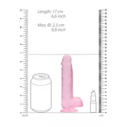 This REALROCK CRYSTAL CLEAR model has been designed with realistic balls for an enhanced lifelike experience. All come with a sturdy suction cup so you can stick it to practically any smooth surface. All are body-safe and non-porous which makes them easy-to-clean and gives them a longer lasting durability. This model with balls stands 17cm (6.7″) tall including the suction cup, has an insertable length of 12.5cm (4.7″) and has a girth of 3.1cm (1.2″).
