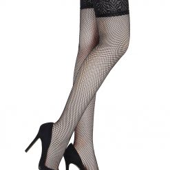 Sexy black thigh high stockings. These are available in medium and 2XL, so should fit Australian 8-12 and 14-18. They are made of 88% nylon and 12% spandex.