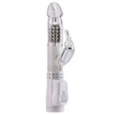 The limited edition rabbit vibrator features 20 internally plugged beads with dual direction rotation including multispeed, multispeed clitoral vibrator, gorgeous diamond collar with illuminated soft touch controls. This top of the line vibrator is fully waterproof and requires 3 AA batteries to operate.