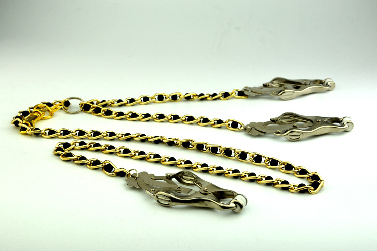 Metal Nipple and Clitoral Clamps with Chainlink.