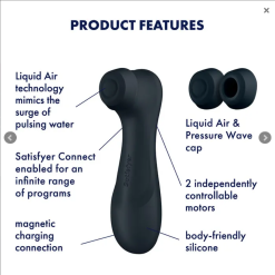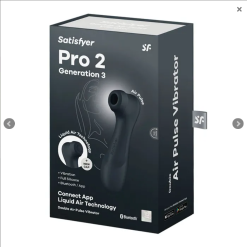 Get ready for a new wave of pleasure! The Pro 2 Generation 3 is the latest edition of our iconic Air Pulse pleaser, now also with vibration and innovative Liquid Air Technology which creates a sensation like the sensual surge of pulsing water. With a smooth, silky silicone finish and a weighted head for ergonomic handling, the Pro2 Gen3 delivers the intense orgasms you know and love. But now, you’ll be flooded with the pleasure of a tapping touch as the air pressure waves arouse your clitoris through a thinly sheathed cap. Bluetooth enabled, the Pro2Gen 3 Connect App pairs with our award-winning, free, Satisfyer Connect app, giving you the option to have complete control the powerful motor and truly customise your pleasure. Of course, you always have the option to use without the app and control via the panel buttons for 11 pressure wave and 12 vibration program options. The Pro2 Gen 3 Connect App is made of body safe silicone, is rechargeable, and is IPX7 Waterproof rated. Enjoy the rush!