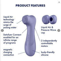 Get ready for a new wave of pleasure! The Pro 2 Generation 3 is the latest edition of our iconic Air Pulse pleaser, now also with vibration and innovative Liquid Air Technology which creates a sensation like the sensual surge of pulsing water. With a smooth, silky silicone finish and a weighted head for ergonomic handling, the Pro2 Gen3 delivers the intense orgasms you know and love. But now, you’ll be flooded with the pleasure of a tapping touch as the air pressure waves arouse your clitoris through a thinly sheathed cap. Bluetooth enabled, the Pro2Gen 3 Connect App pairs with our award-winning, free, Satisfyer Connect app, giving you the option to have complete control the powerful motor and truly customise your pleasure. Of course, you always have the option to use without the app and control via the panel buttons for 11 pressure wave and 12 vibration program options. The Pro2 Gen 3 Connect App is made of body safe silicone, is rechargeable, and is IPX7 Waterproof rated. Enjoy the rush!