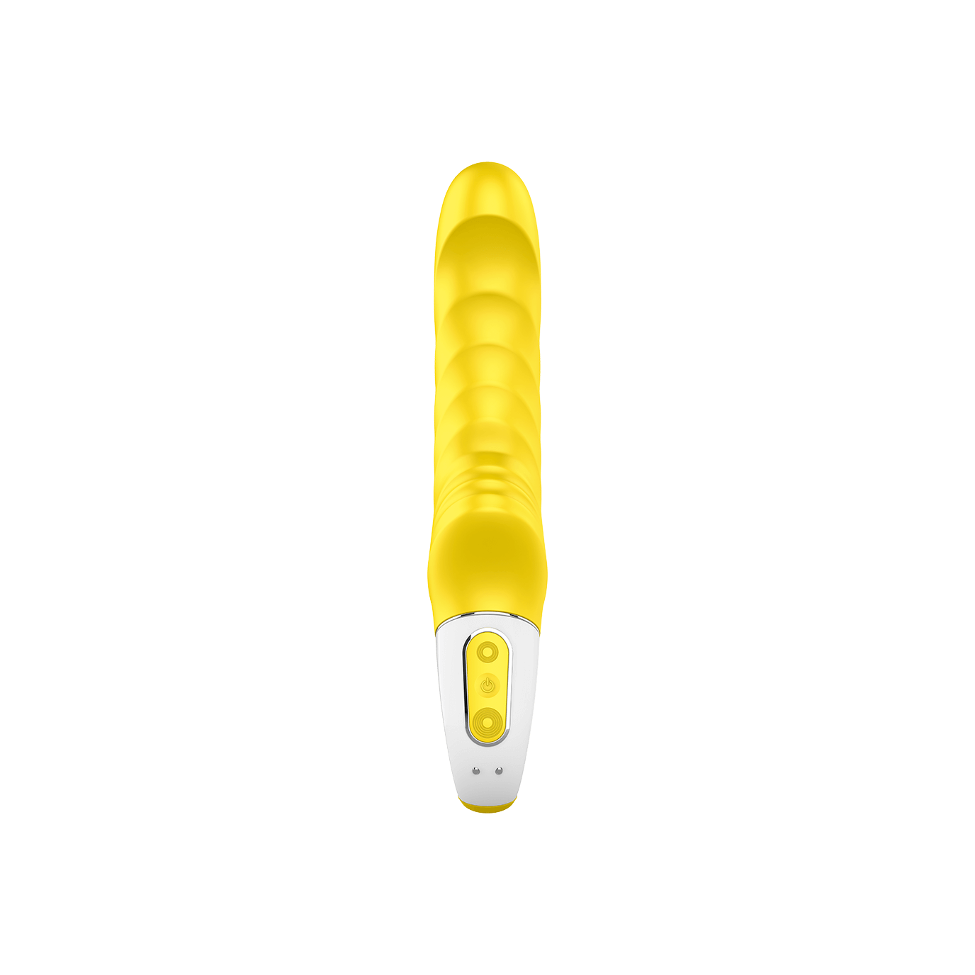In Sunny Yellow and with a special ribbed structure we present our Satisfyer Vibes Yummy Sunshine. It is also a smaller G-Spot vibrator and has the features like the rest of the family.