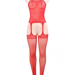 Sexy Red Fishnet Bodysuit With Garters