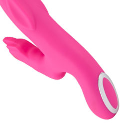 Made from beautiful smooth body safe silicone, this rabbit vibrator will sure to have you cumming back for more. It is rechargeable, has 12 unique vibrating patterns from the clit and shaft vibrators, 3 pattern shaft rotation, and will be the perfect addition to your collection. Ergonomic shape helps even the fussiest lady achieve climax.